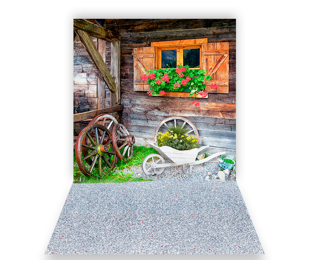 Fundo Fotográfico 1,50 x 2,70 - Carriola de Flores Com Piso De Pedrinhas 082