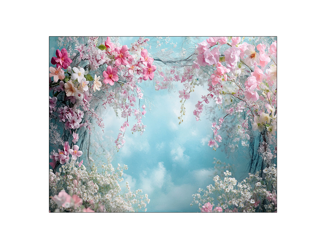 Fundo Fotográfico 1,55 x 1,20 - Céu e Flores Rosa com Branco 199