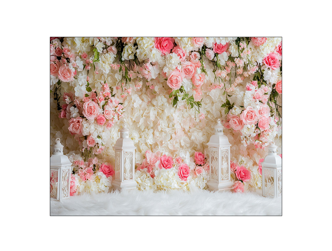 Fundo Fotográfico 1,55 x 1,20 - Galhos e Flores Branco e Rosa 201