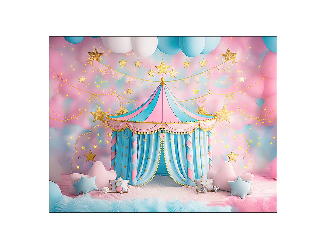 Fundo Fotográfico 1,55 x 1,20 - New Born Circo Azul, Rosa e Dourado 033