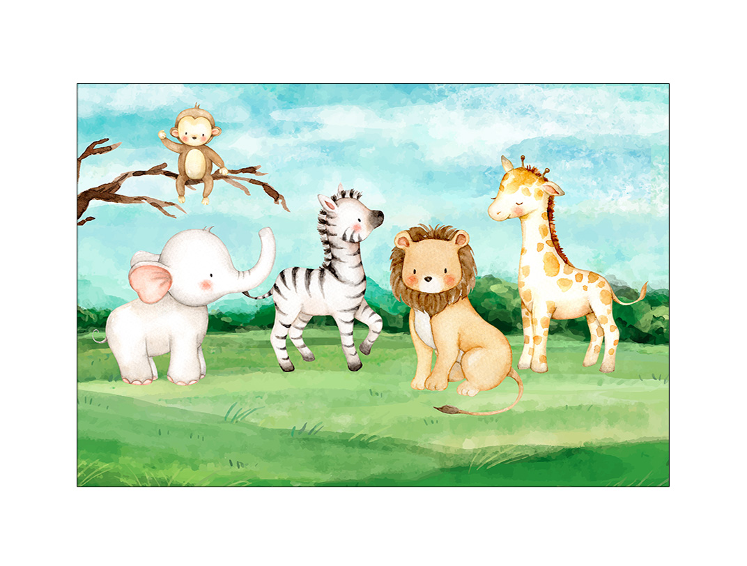Fundo Fotográfico 2,20 x 1,50 - Animais Safari Aquarela 002