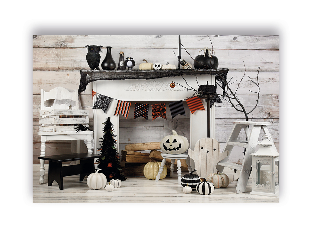 Fundo Fotográfico 2,20 x 1,50 - Cenário de Halloween Efeito Madeira Branca 019