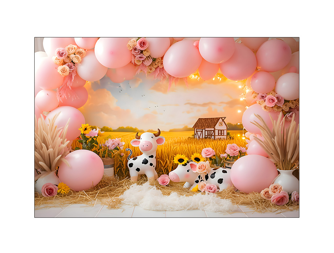 Fundo Fotográfico 2,20 x 1,50 - Fazendinha Rosa Balões e Flores 028