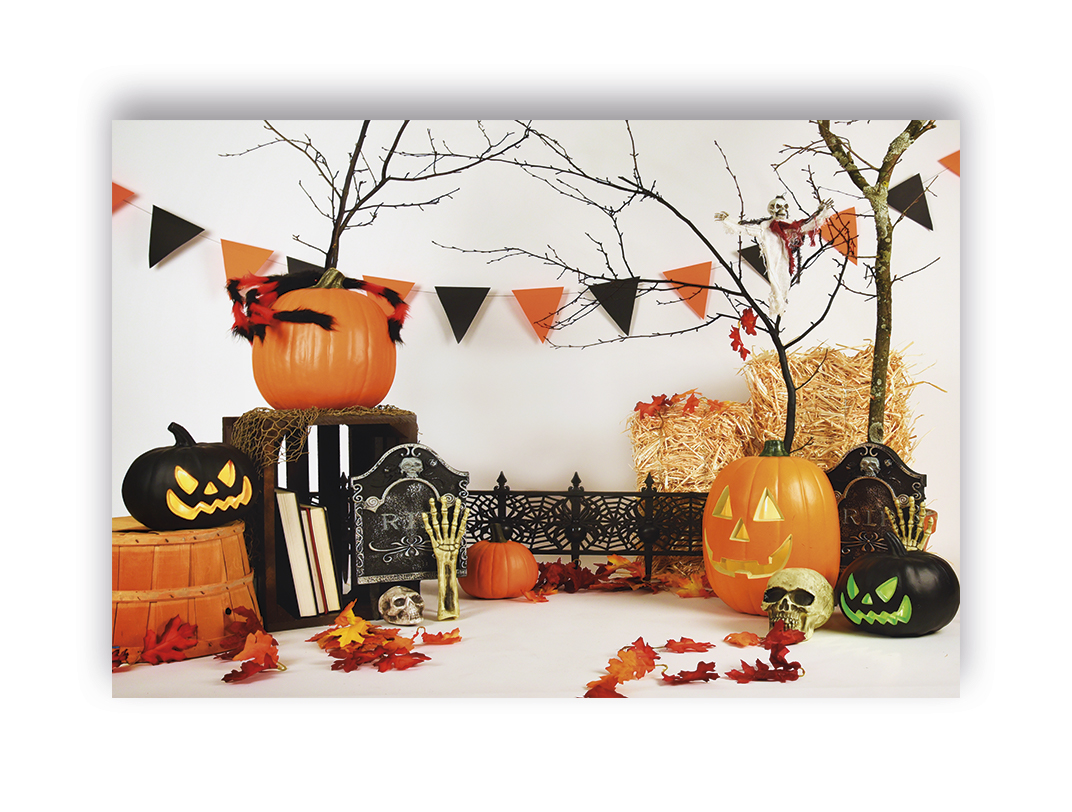 Fundo Fotográfico 2,20 x 1,50 - Halloween Bandeirinhas e Abóboras 017