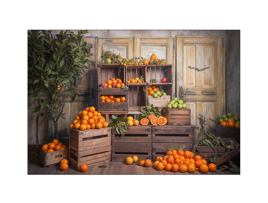 Fundo Fotográfico 2,20 x 1,50 - New Born Caixotes e Laranjas 032