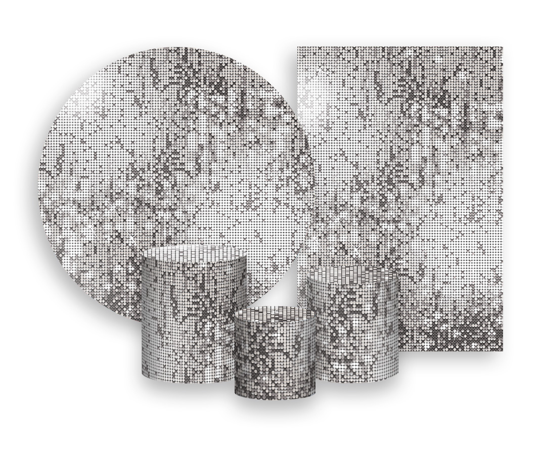 Kit 2 Painéis De Festa + Trio De Capas Cilindro - Efeito Lantejoulas Prateadas 007