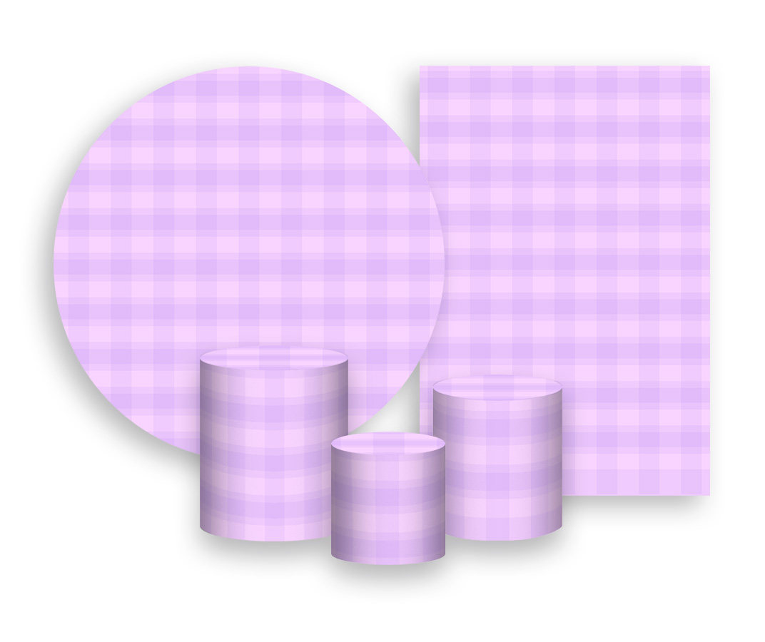 Kit 2 Painéis De Festa + Trio De Capas Cilindro - Estampa Xadrez Lilás 009