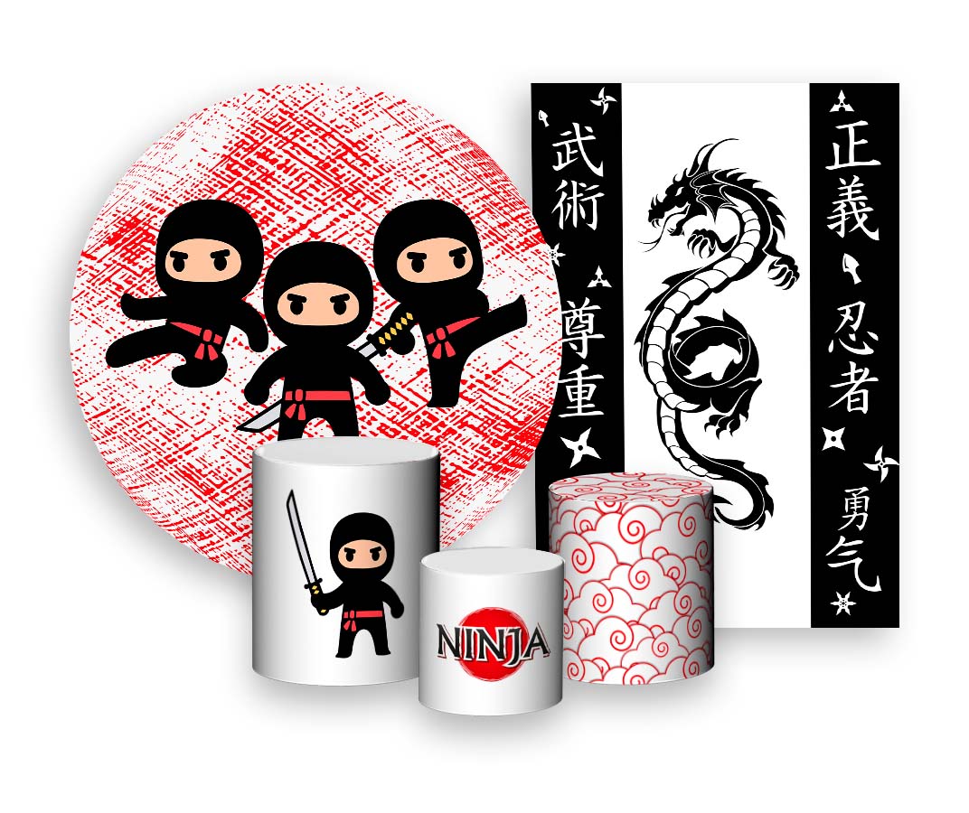 Kit 2 Painéis De Festa + Trio De Capas Cilindro - Ninjas Cute 002