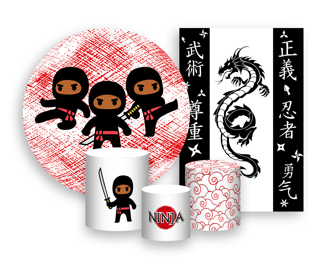 Kit 2 Painéis De Festa + Trio De Capas Cilindro - Ninjas Cute 025