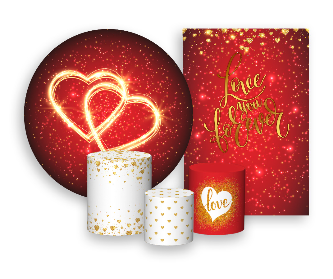 Kit 2 Painéis De Festa + Trio De Capas Cilindro - Noivado Coração Dourado 001
