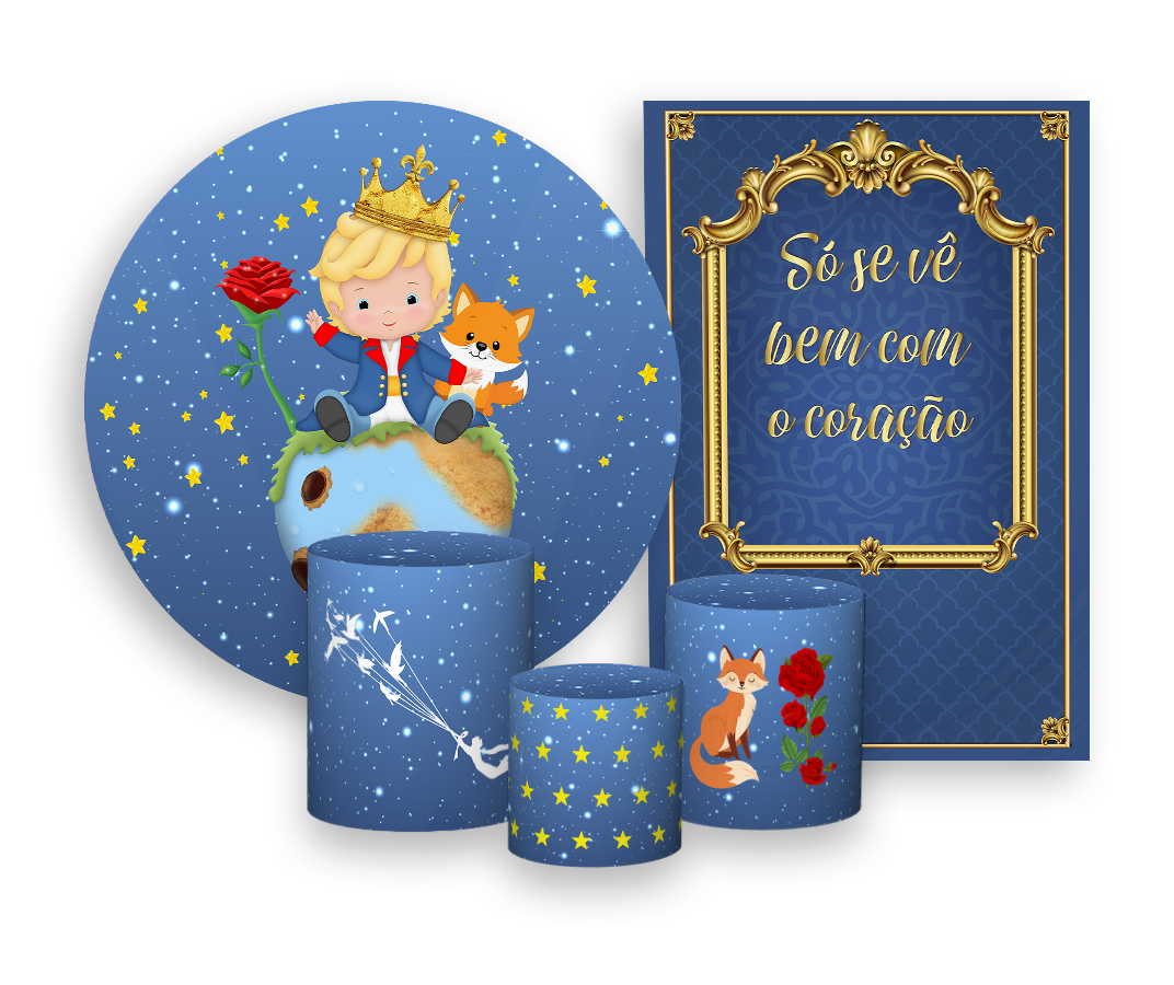 Kit 2 Painéis De Festa + Trio De Capas Cilindro - Pequeno Príncipe Loiro Fundo Azul 007
