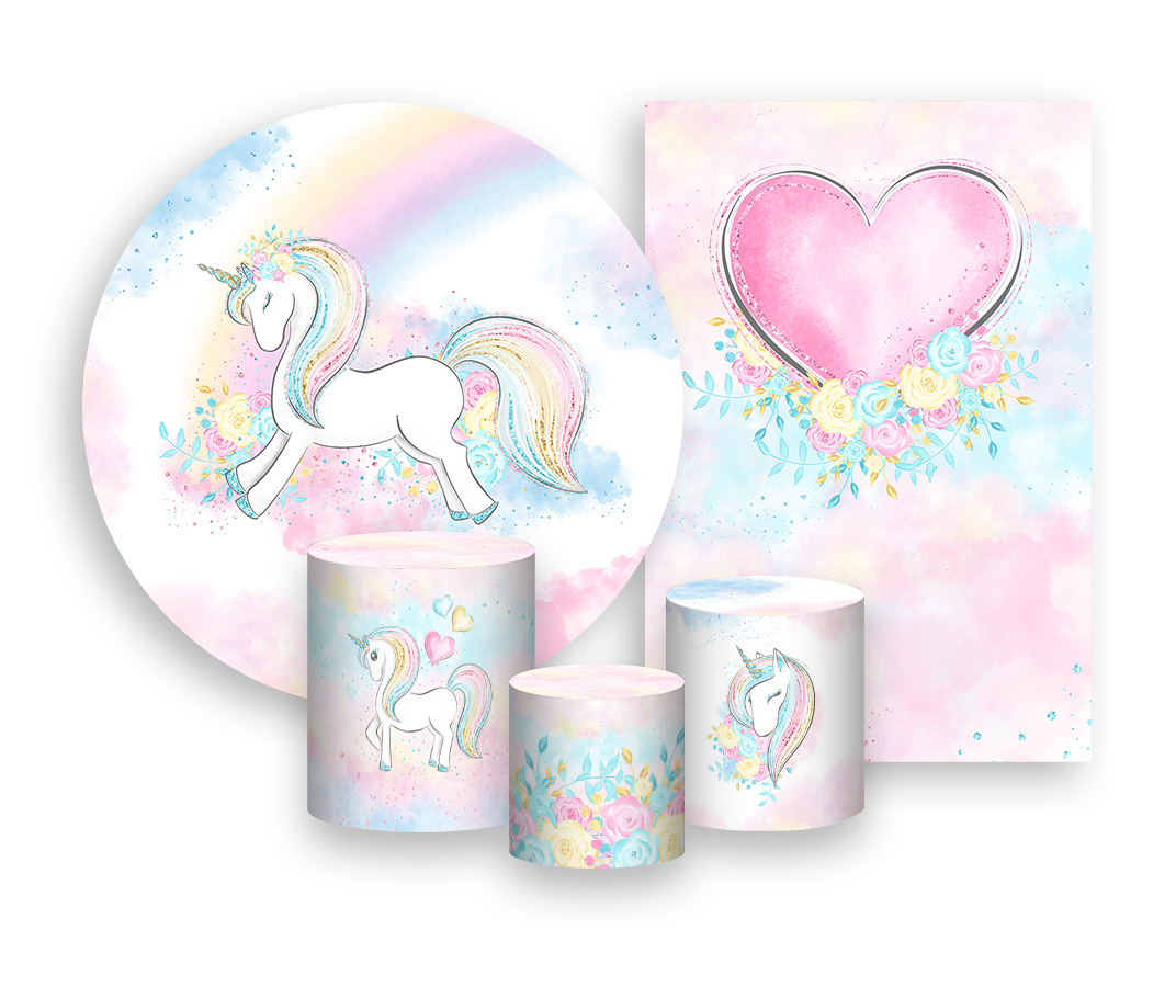 Kit 2 Painéis De Festa + Trio De Capas Cilindro - Unicórnio Azul e Rosa 006