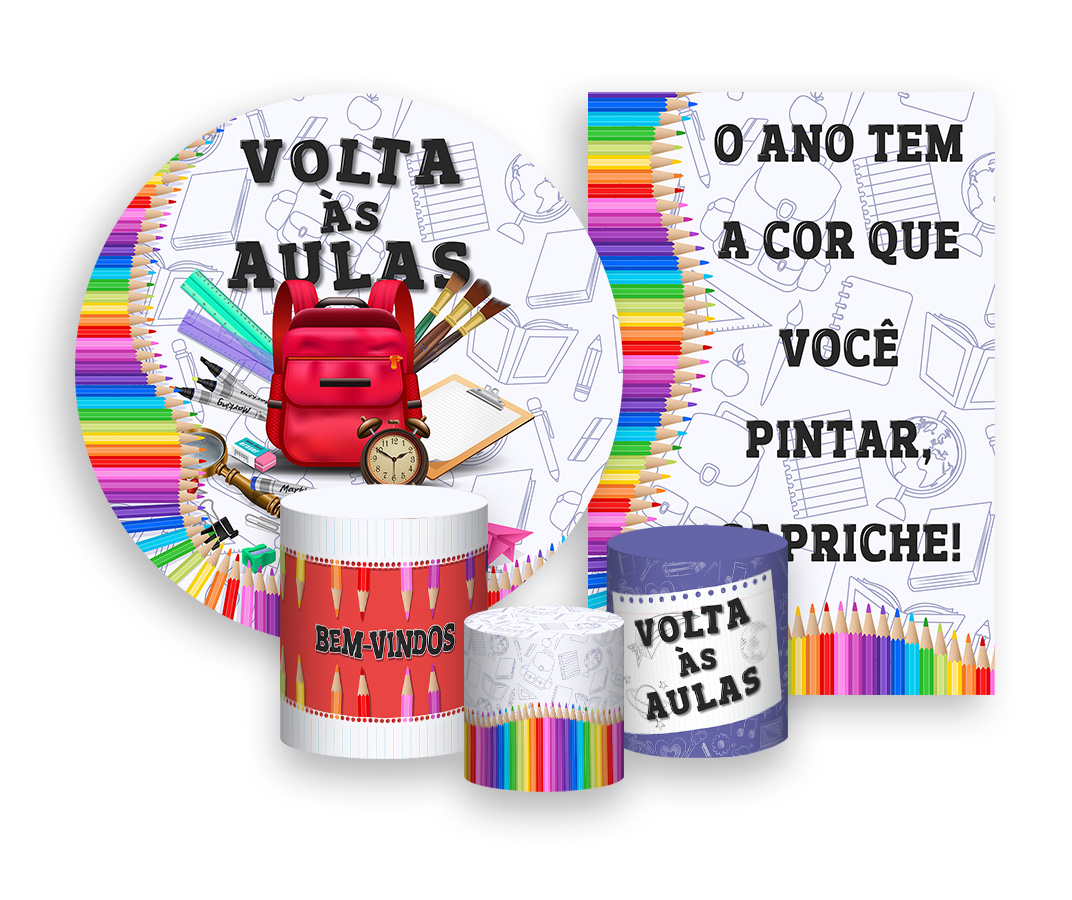 Kit 2 Painéis De Festa + Trio De Capas Cilindro - Volta as Aulas Material Escolar 010