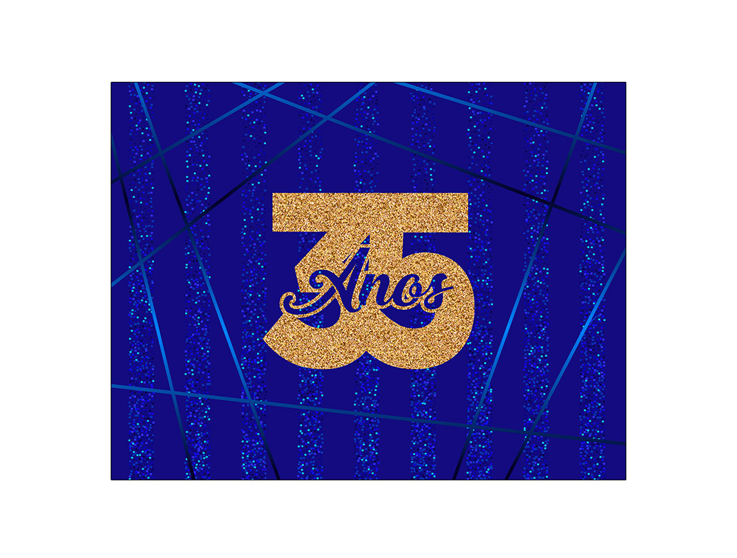 Painel de Festa Horizontal 1,55 X 1,20 - Azul Efeito Glitter 35 Anos Dourado 067