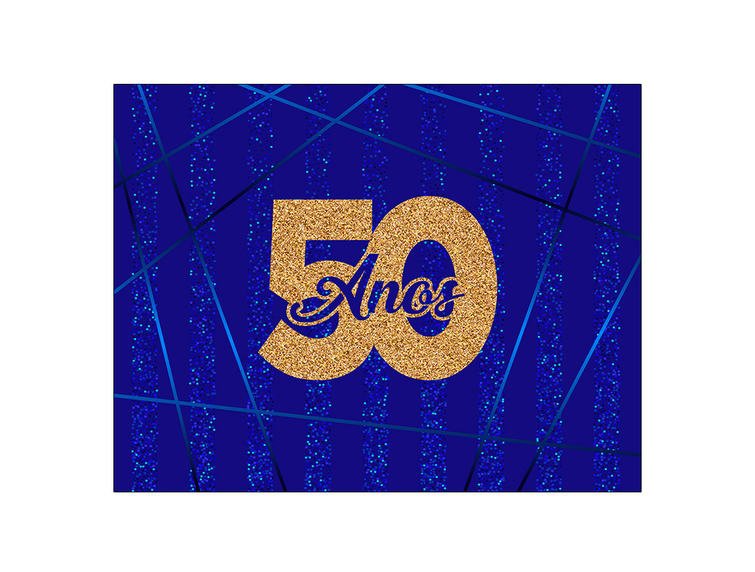 Painel de Festa Horizontal 1,55 X 1,20 - Azul Efeito Glitter 50 Anos Dourado 070
