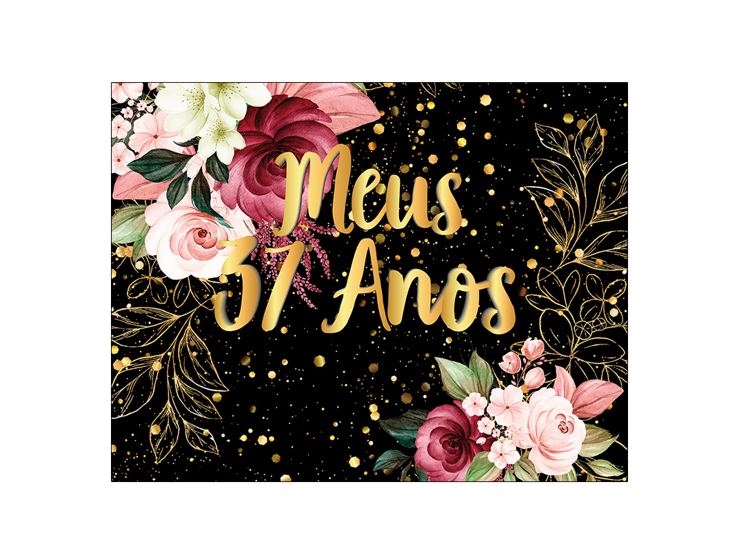 Painel de Festa Horizontal 1,55 X 1,20 - Flores Efeito Brilhos Meus 37 Anos Dourado 021