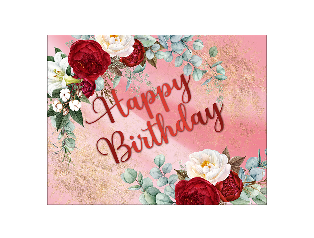 Painel de Festa Horizontal 1,55 X 1,20 - Happy Birthday Floral Rosa 291