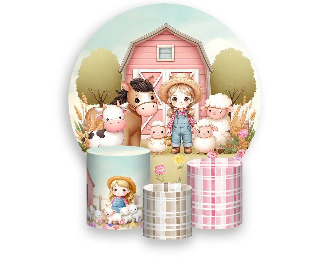 Painel De Festa Redondo 1,50 x 1,50 + Fazendinha Menina Loira Animais Fofos 039