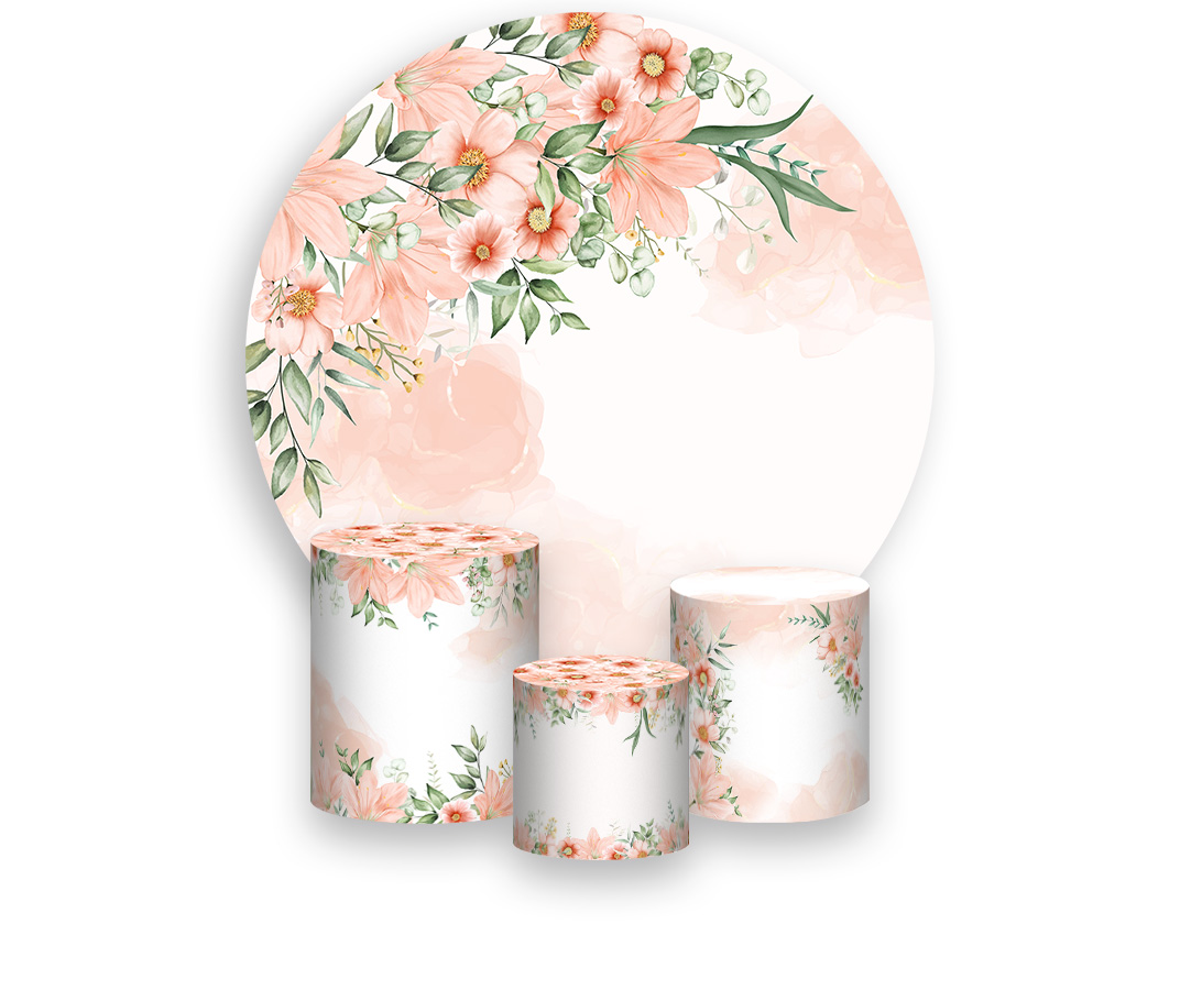 Painel De Festa Redondo 1,50 x 1,50 + Floral Tons Salmão 090