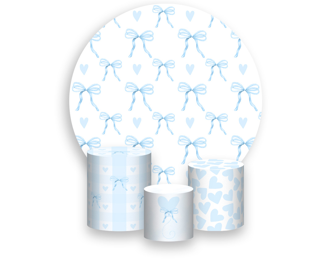Painel De Festa Redondo 1,50 x 1,50 + Laços e Corações Neutros Azul 075