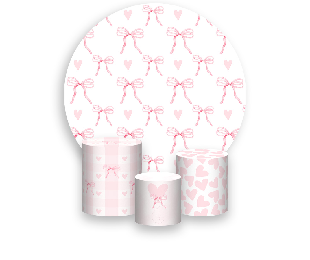 Painel De Festa Redondo 1,50 x 1,50 + Laços e Corações Neutros Rosa 077