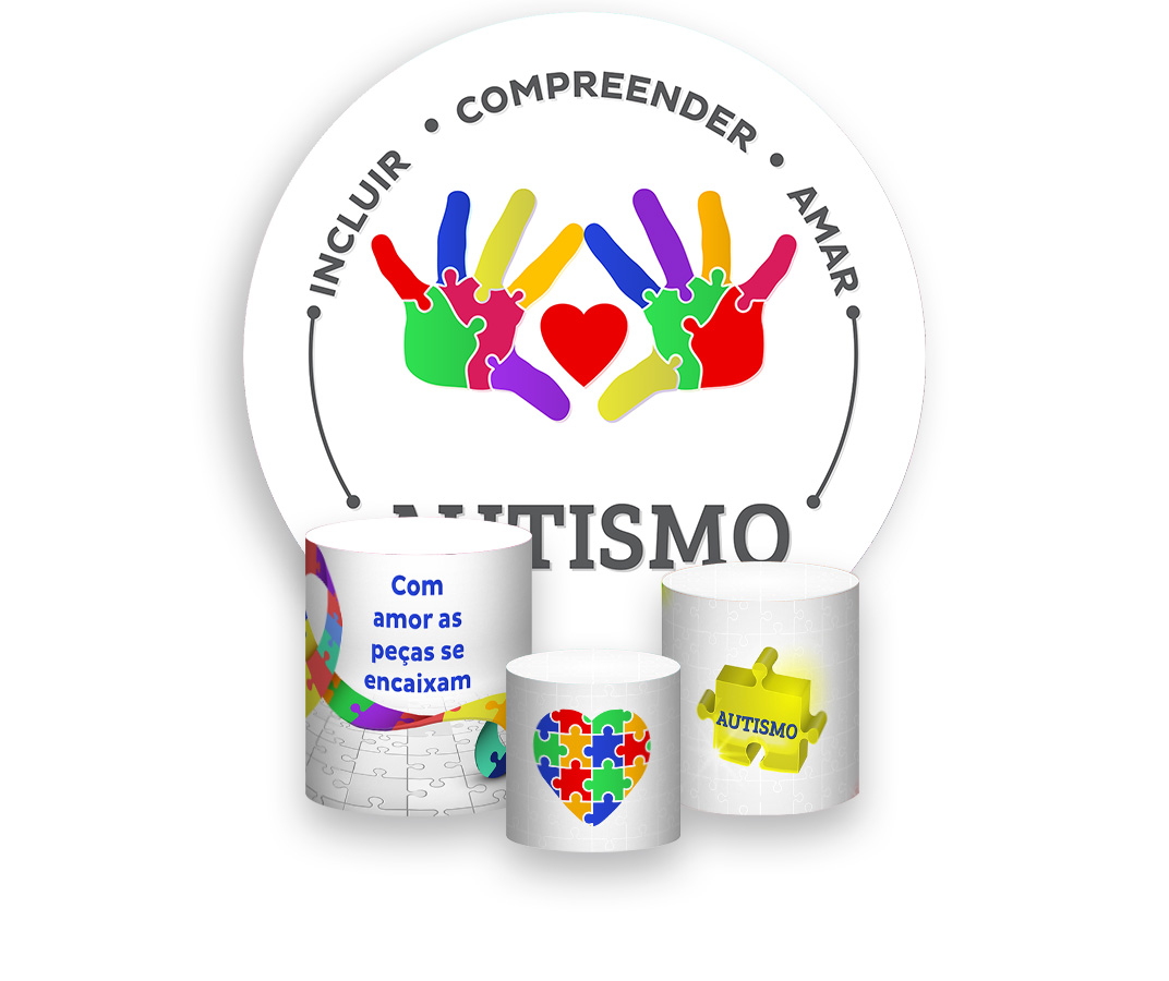 Painel De Festa Redondo 1,50 x 1,50 + Trio De Capas Cilindro - Autismo Mãos Coloridas 002