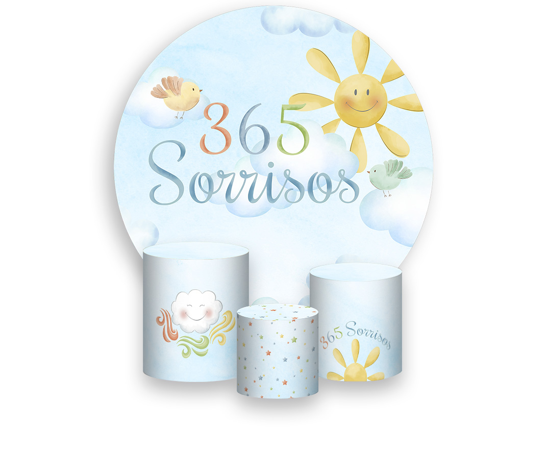 Painel De Festa Redondo 1,50 x 1,50 + Trio De Capas Cilindro - 365 Sorrisos Aquarela 062
