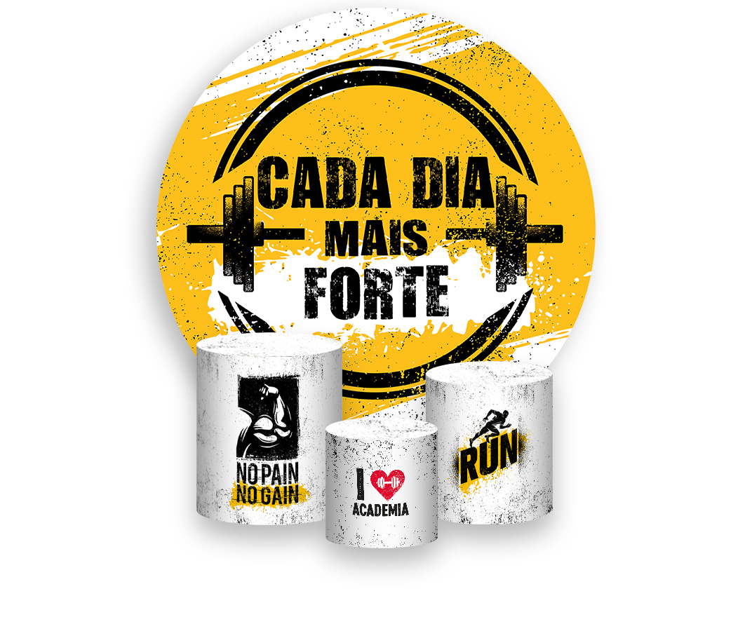 Painel De Festa Redondo 1,50 x 1,50 + Trio De Capas Cilindro - Academia Cada Dia Mais Forte 008