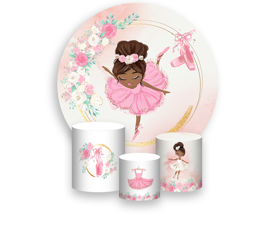 Painel De Festa Redondo 1,50 x 1,50 + Trio De Capas Cilindro - Bailarina Balé Elegante 018