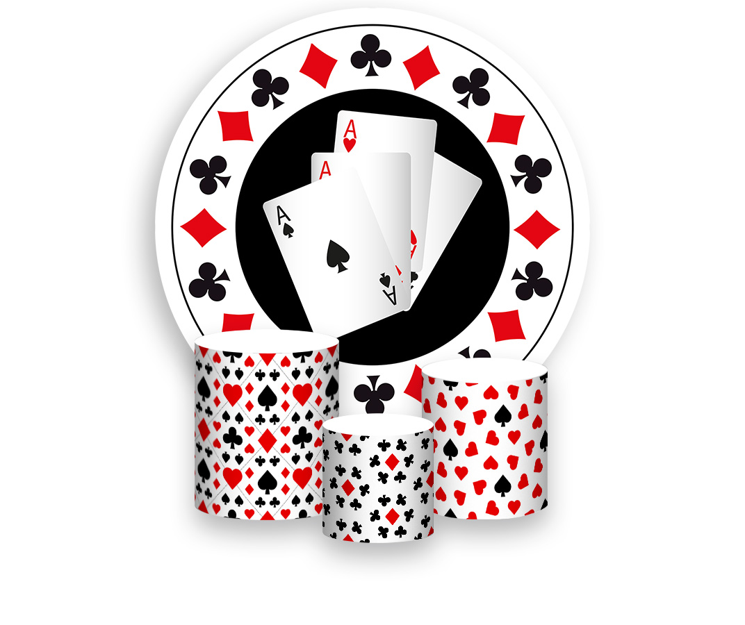 Painel De Festa Redondo 1,50 x 1,50 + Trio De Capas Cilindro - Baralho Cassino Simples 005