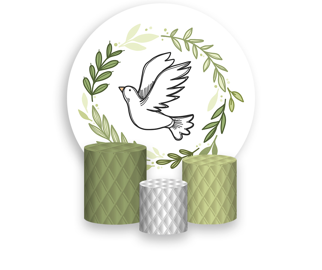 Painel De Festa Redondo 1,50 x 1,50 + Trio De Capas Cilindro - Batizado Espírito Santo Folhagens 013