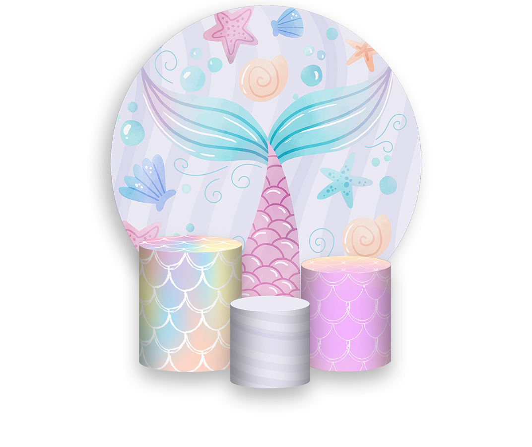Painel De Festa Redondo 1,50 x 1,50 + Trio De Capas Cilindro - Cauda Sereia Candy 010