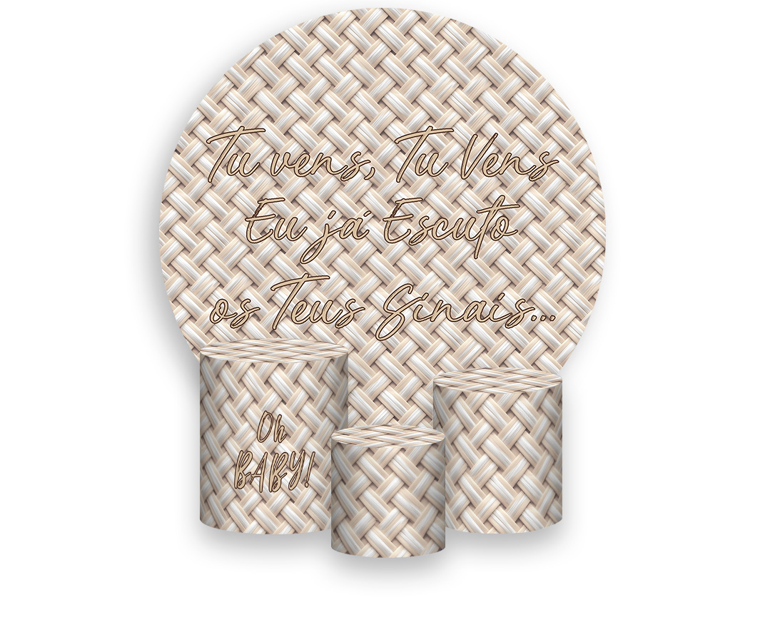 Painel De Festa Redondo 1,50 x 1,50 + Trio De Capas Cilindro - Chá de Bebê e Fraldas Bege Tu Vens 060