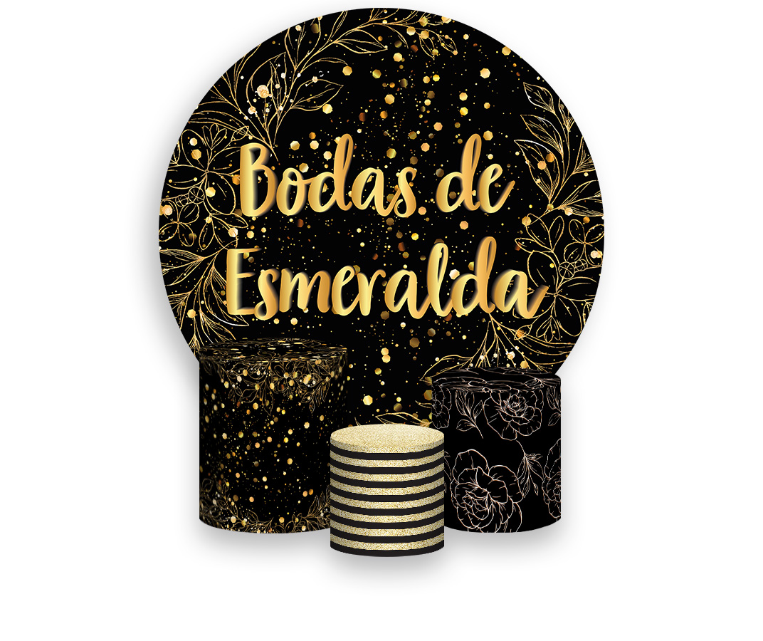 Painel De Festa Redondo 1,50 x 1,50 + Trio De Capas Cilindro - Efeito Brilhos Bodas de Esmeralda 010