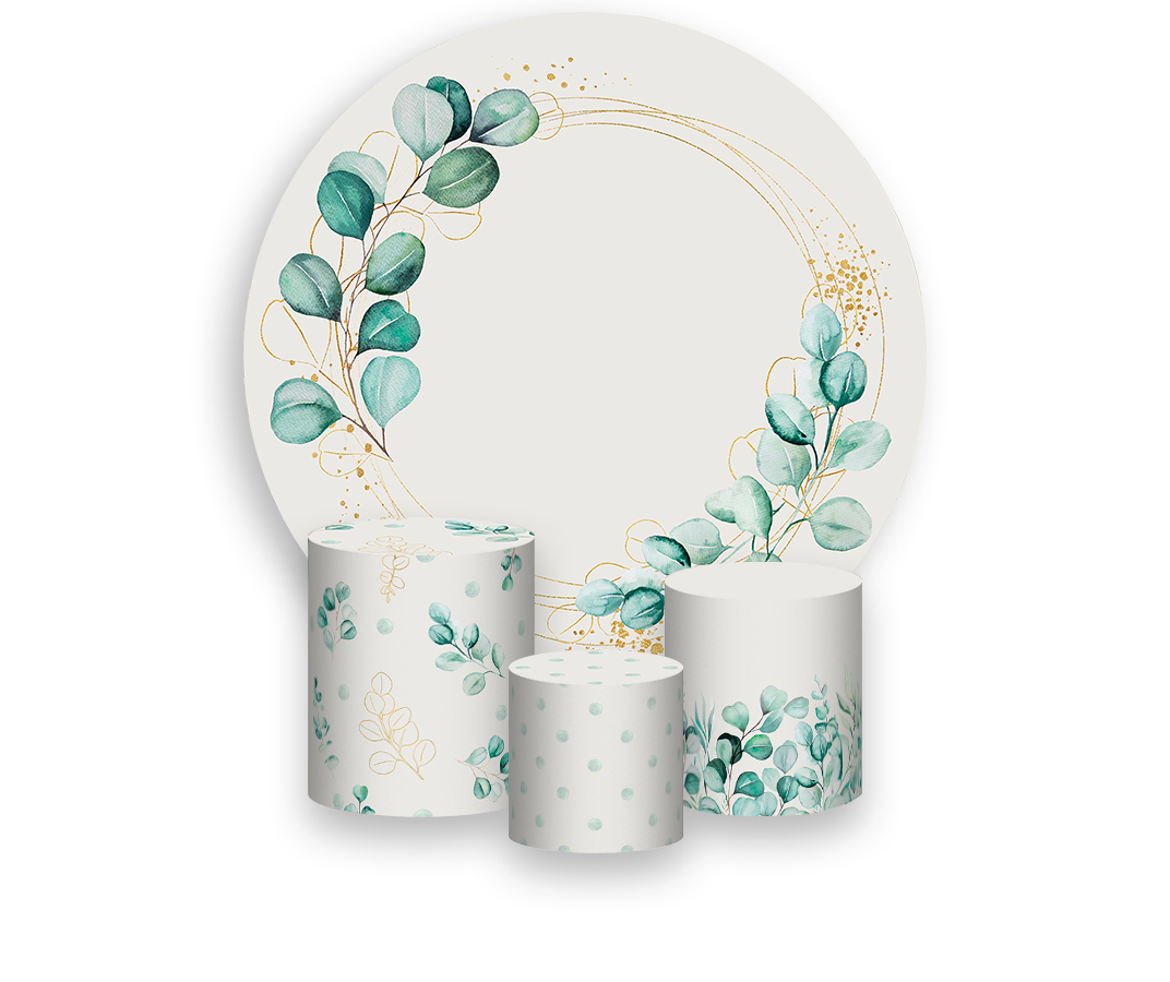Painel De Festa Redondo 1,50 x 1,50 + Trio De Capas Cilindro - Efeito Geométrico Folhagens 028