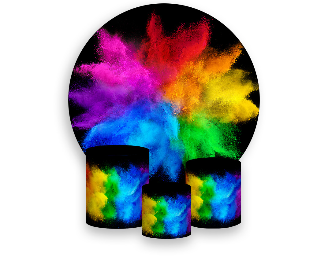 Painel De Festa Redondo 1,50 x 1,50 + Trio De Capas Cilindro - Explosão de Cores 021