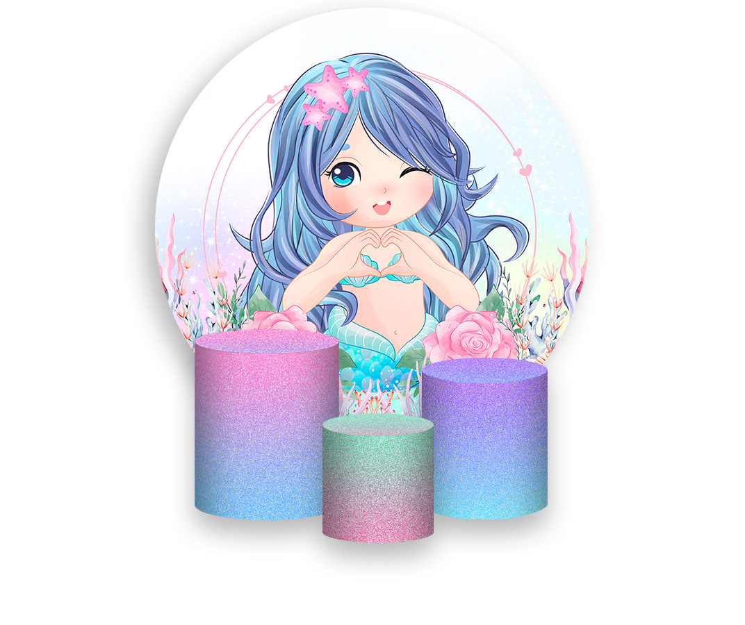 Painel De Festa Redondo 1,50 x 1,50 + Trio De Capas Cilindro - Sereia Candy 007