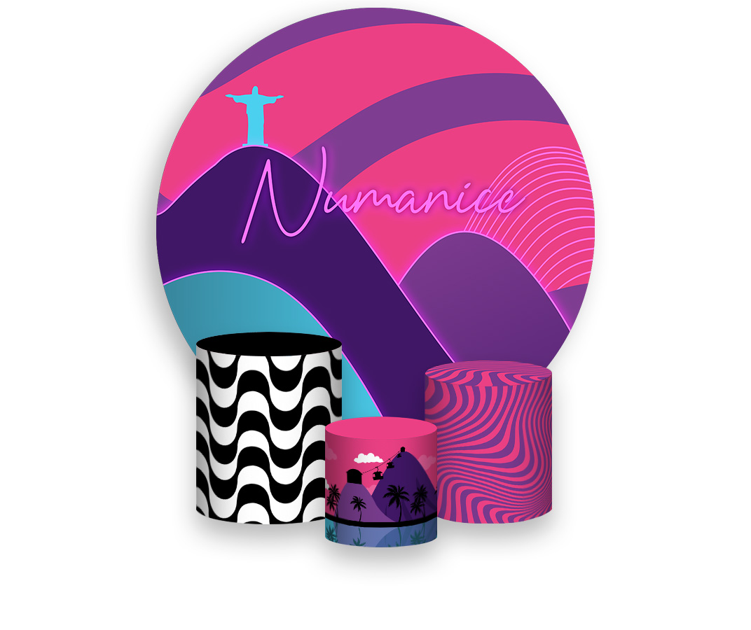 Painel De Festa Redondo 1,50 x 1,50 + Trio De Capas Cilindro - Tardezinha Cristo Redentor 017
