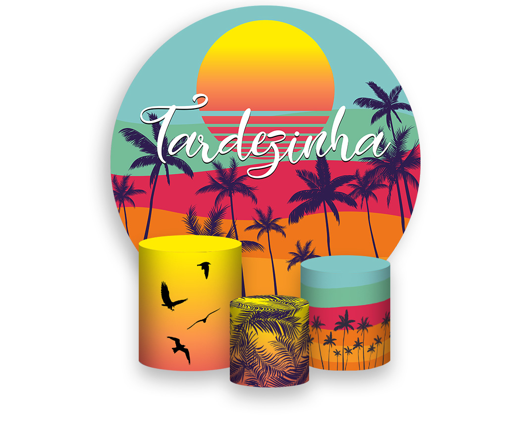 Painel De Festa Redondo 1,50 x 1,50 + Trio De Capas Cilindro - Tardezinha Listrado Verde e Laranja 009