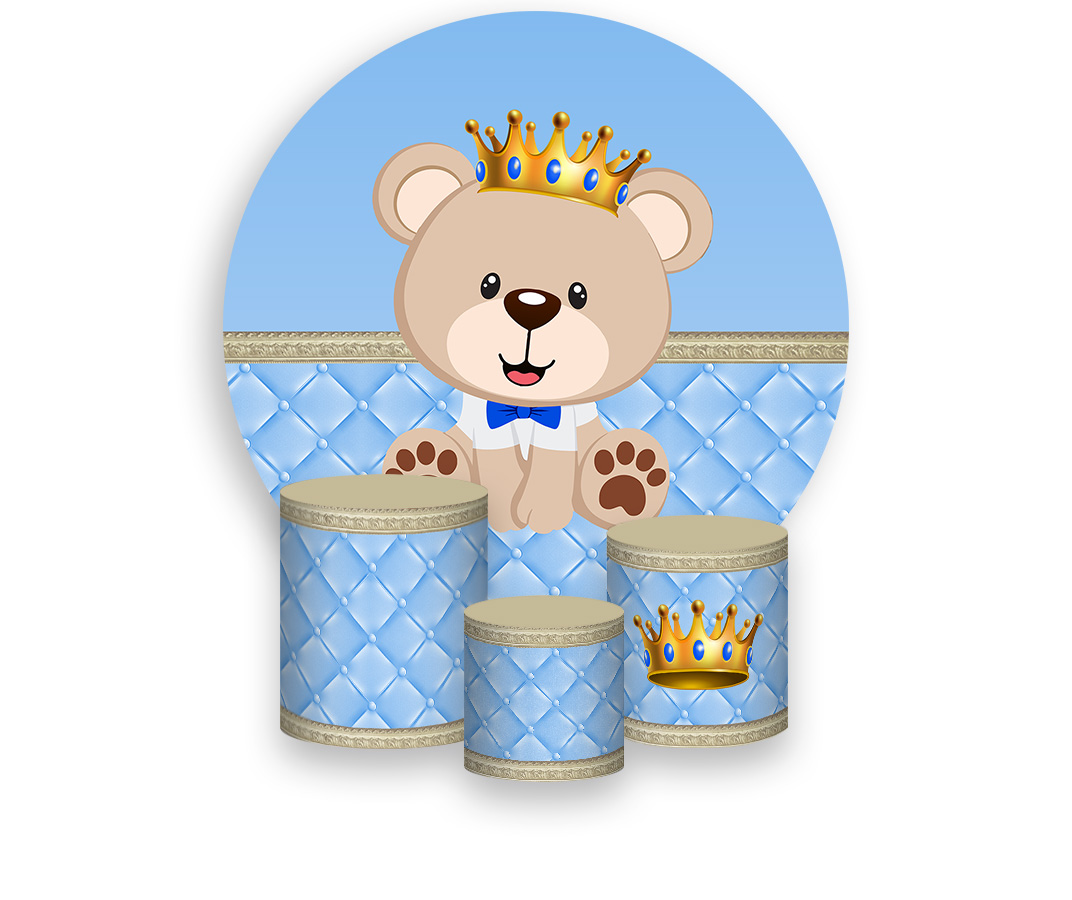 Painel De Festa Redondo 1,50 x 1,50 + Trio De Capas Cilindro - Ursinho Azul Príncipe 054