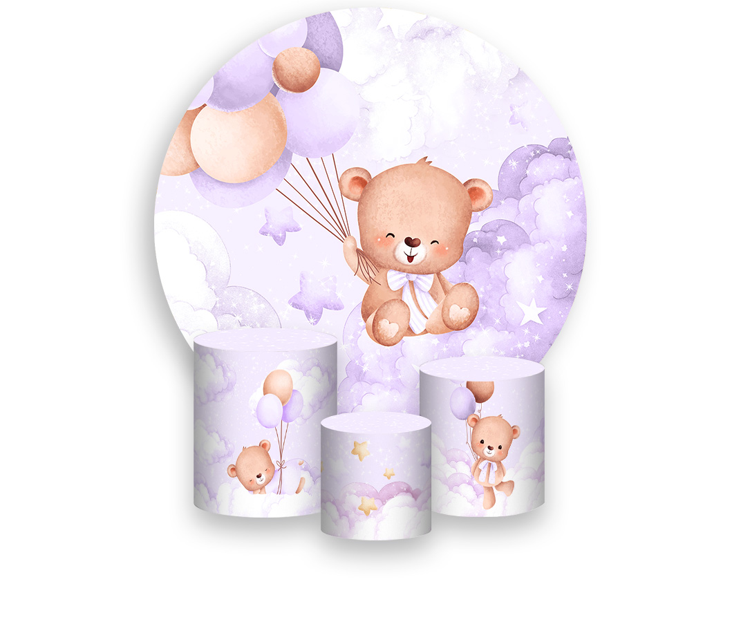 Painel De Festa Redondo 1,50 x 1,50 + Trio De Capas Cilindro - Ursinho Céu Lilás 083