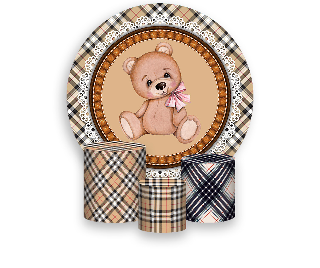 Painel De Festa Redondo 1,50 x 1,50 + Trio De Capas Cilindro - Ursinho Xadrez 023