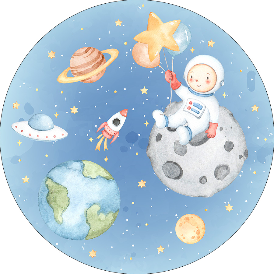 Painel De Festa Redondo 1,50x1,50 - Astronauta no Planetinha 006