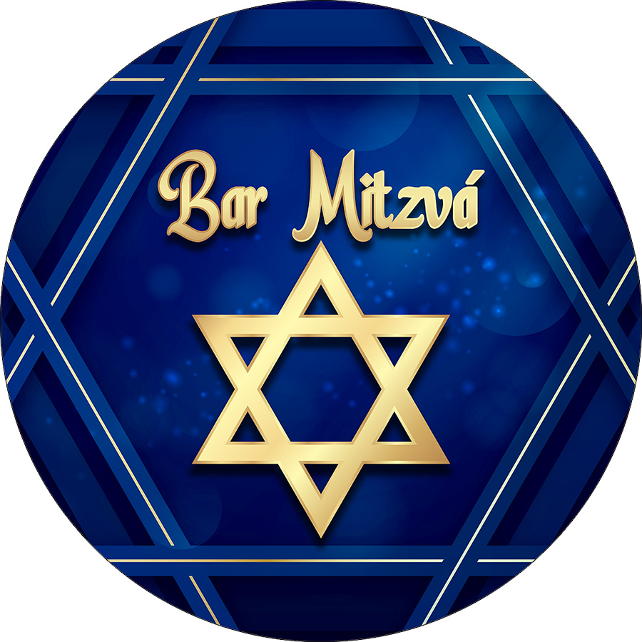 Painel De Festa Redondo 1,50x1,50 - Bar Mitzvá Azul e Dourado 044