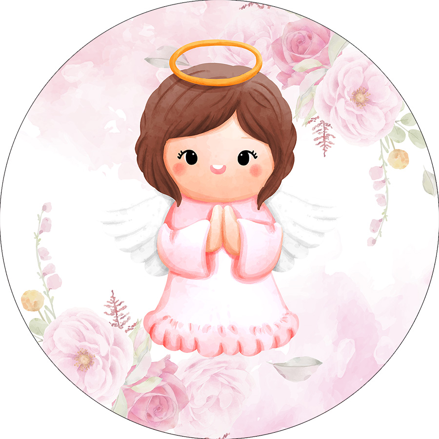 Painel De Festa Redondo 1,50x1,50 - Batizado Anjinha Cute 035