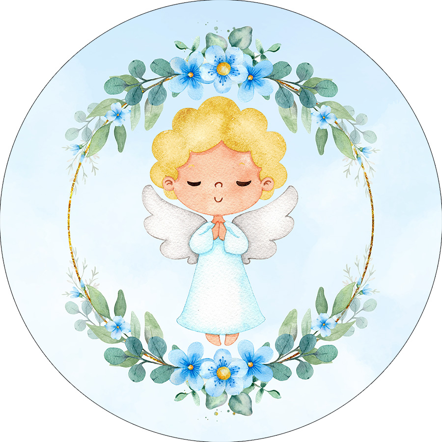 Painel De Festa Redondo 1,50x1,50 - Batizado Anjinho Frame Floral 043
