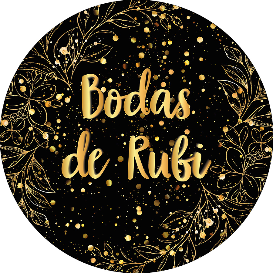 Painel De Festa Redondo 1,50x1,50 - Bodas de Rubi Efeito Brilhos Dourados 014