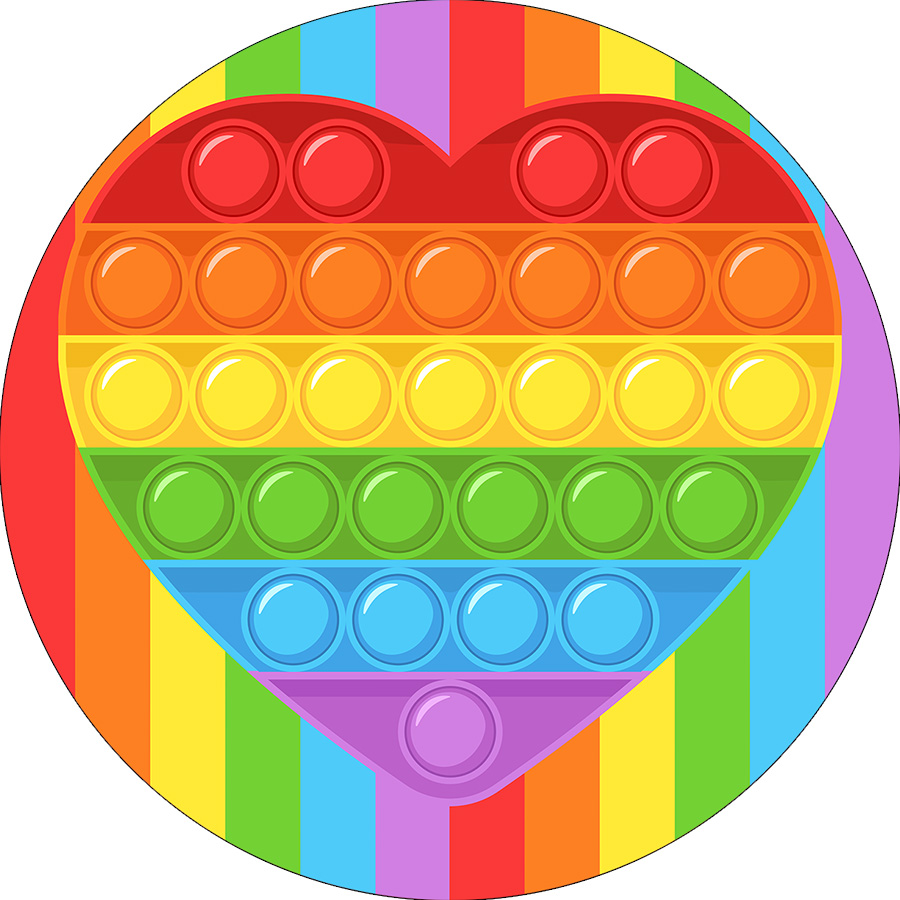 Painel De Festa Redondo 1,50x1,50 - Brinquedo Bolha Push Pop It Coração 003