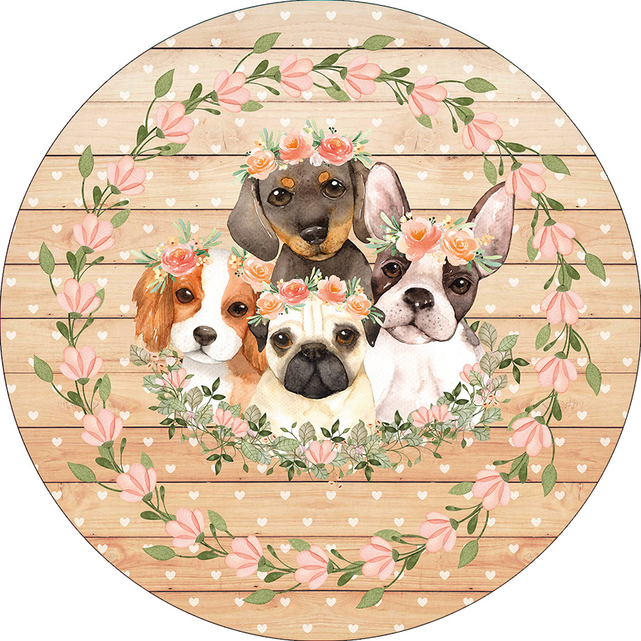 Painel De Festa Redondo 1,50x1,50 - Cachorrinhos Cute Frame Floral 003