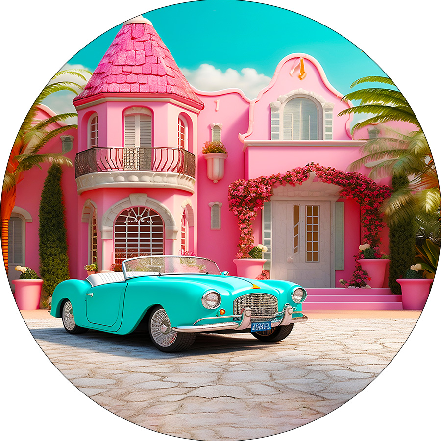 Painel De Festa Redondo 1,50x1,50 - Casa de Boneca Rosa 009